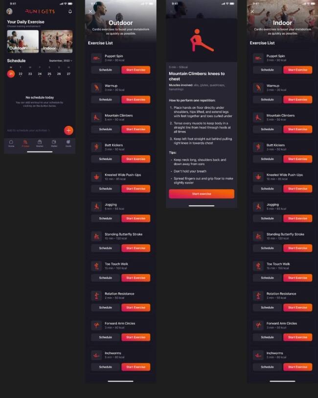 La aplicación “Run and Gets” tiene un enfoque doble: promover la actividad física y recompensar a los usuarios por sus esfuerzos. Funciona a través de un smartwatch que mide las pulsaciones del usuario, estableciendo un límite de dos horas diarias de actividad física. La aplicación generará una moneda virtual llamada “run calories” basada en la intensidad y duración del ejercicio.