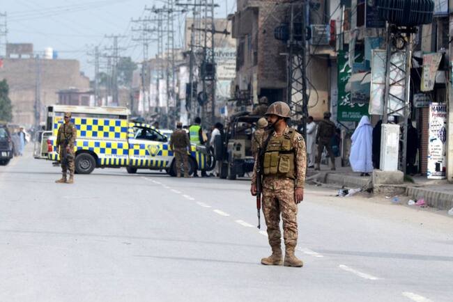 Un policía pakistaní vigila la zona de un ataque en la zona fronteriza con Afganistán. / Anadolu