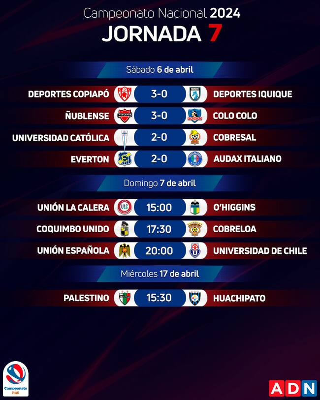 Finalizada la sexta fecha del Campeonato Nacional 2024, las miradas de los hinchas nacionales automáticamente se trasladaron hasta el próximo fin de semana, cuando se tenga que disputar la séptima jornada del fútbol chileno en su Primera División.