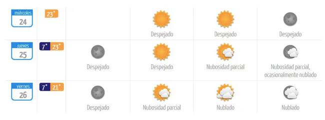 La temperatura que se ha registrado durante este miércoles 24 de abril es de una mínima de 10° C. Mientras que la máxima llegó a los 23° C.