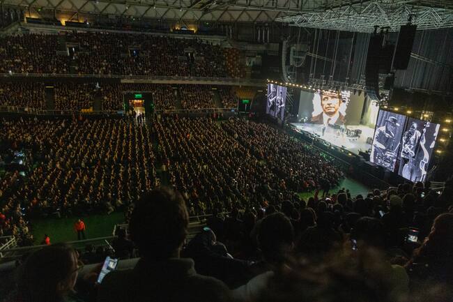 En ese momento, un cálido abrazo de las primeras notas, las luces, y la banda sobre el escenario, erizó la piel, y sacó la garganta del estado de reposo, uniendo manos entre cientos de personas encandiladas al interior del Movistar Arena.