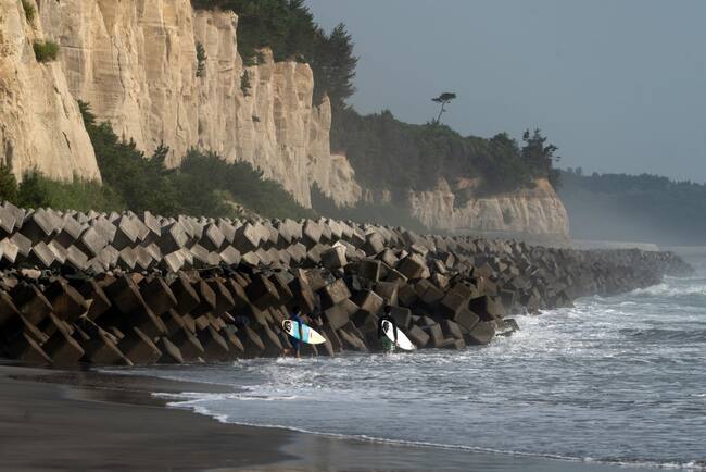Personas practican surf en el mar japonés / Tomohiro Ohsumi