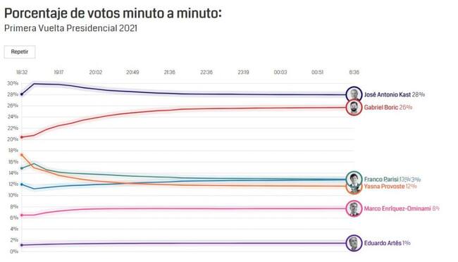 El sitio de análisis de datos DecideChile recordó el cómo se dio el minuto a minuto en las elecciones presidenciales pasadas.