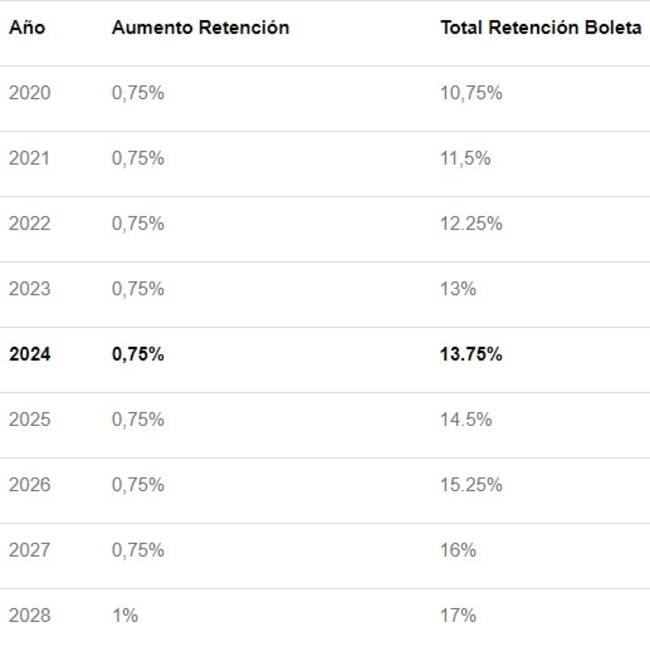 Boletas de honorarios: Así aumentará la retención desde el 1 de enero de 2024