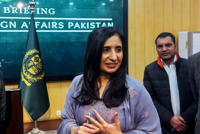 La portavoz del ministerio de relaciones exteriores de Pakistán, Mumtaz Zahra Baloch, habla con los medios de comunicación en la ciudad de Islamabad. / ZAIN ZAMAN JANJUA