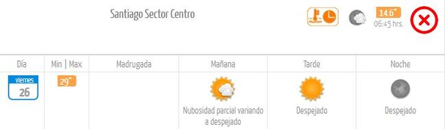- Santiago: nubosidad parcial al amanecer, variando a despejado en la tarde, con 29° de peak.