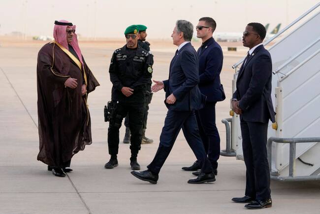 El secretario de Estado de Estados Unidos, Antony Blinken, llega en visita oficial a la ciudad de Riad, la capital de Arabia Saudita. / MARK SCHIEFELBEIN