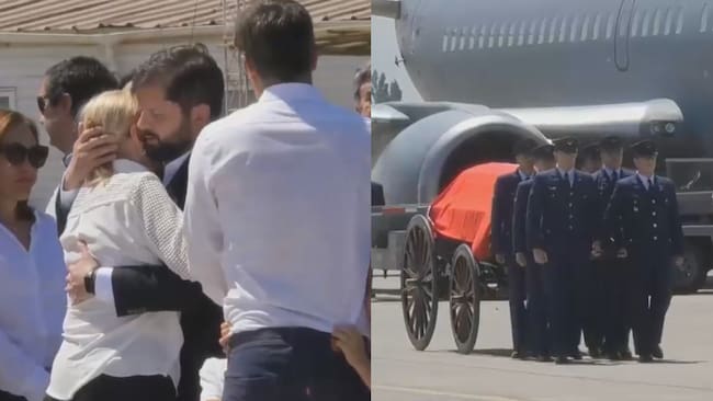 VIDEOS. Marcado por un emotivo abrazo entre Gabriel Boric y Cecilia Morel: así fue la llegada de los restos de Sebastián Piñera a Santiago