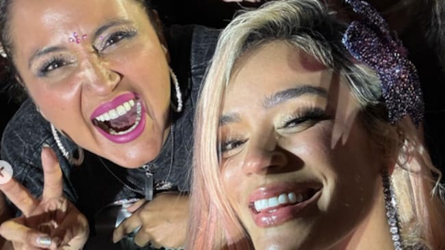 La cantante Karol G, quien por estos días ha llenado el Estadio Nacional, tuvo un especial momento con la comediante Pamela Leiva, en lo que fue su segunda jornada con en suelo chileno.