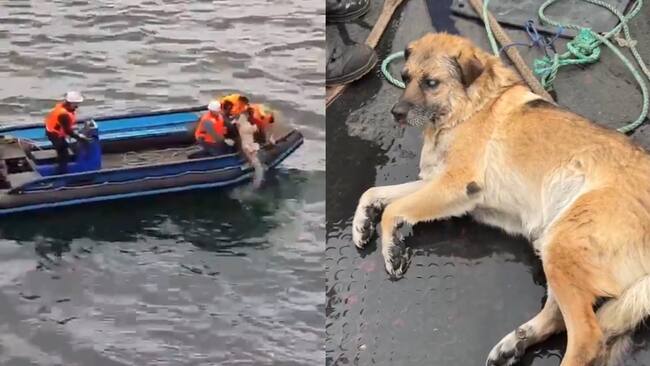 Fueron los tripulantes de un barco ruso los que divisaron a este can e inmediatamente lo socorrieron al verlo nadar en círculos.