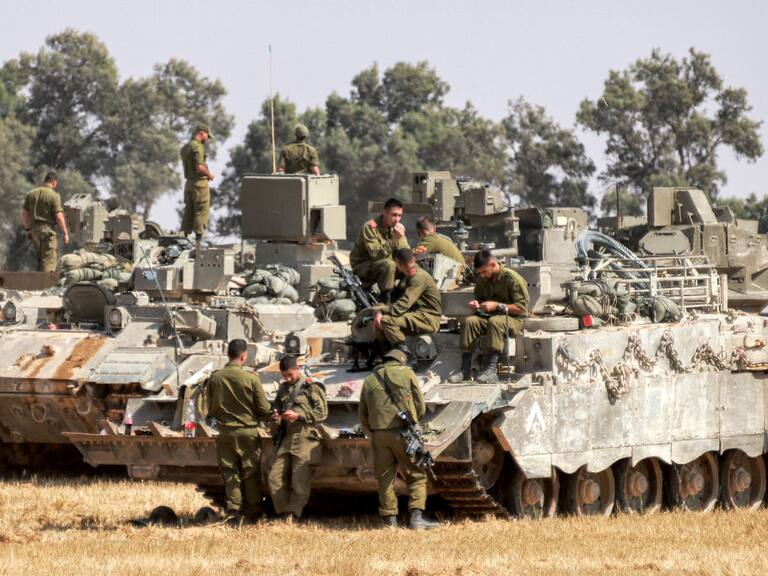Soldados con tanques y artillería de Israel se alistan frente a la zona de Rafah, en la frontera con la Franja de Gaza. / MENAHEM KAHANA