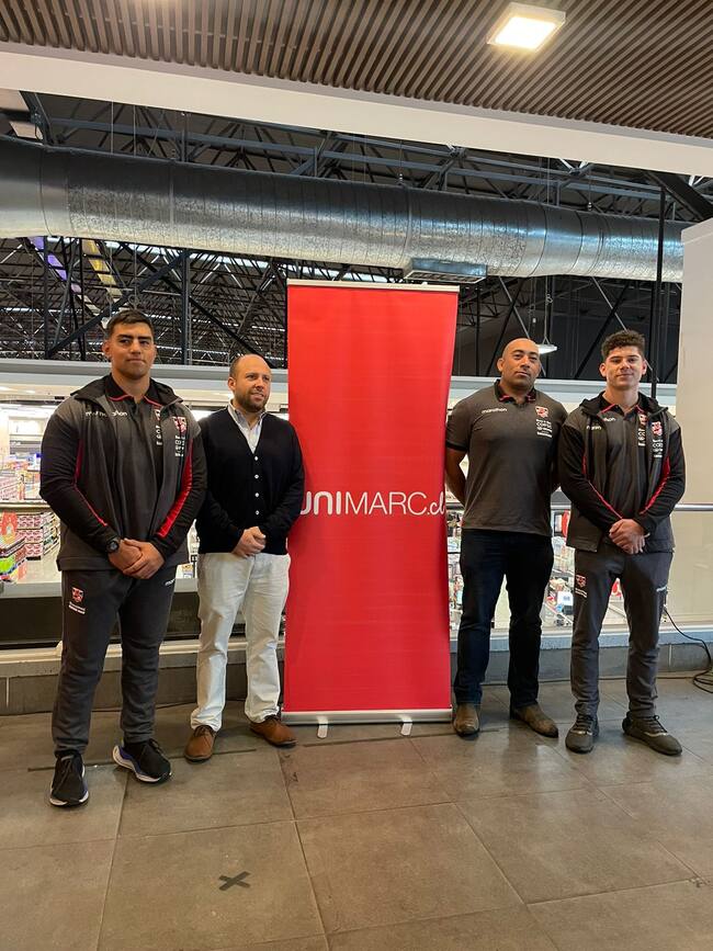 Davor Stancic-Rokotov, director de Chile Rugby; Jorge Delgado, jugador de Selknam Rugby y Los Cóndores; Sebastián Estrada, gerente general de Chile Rugby; Javier Fernández, gerente corporativo de e-commerce de SMU; y Matías Garafulic, jugador de Selknam Rugby y Los Cóndores.