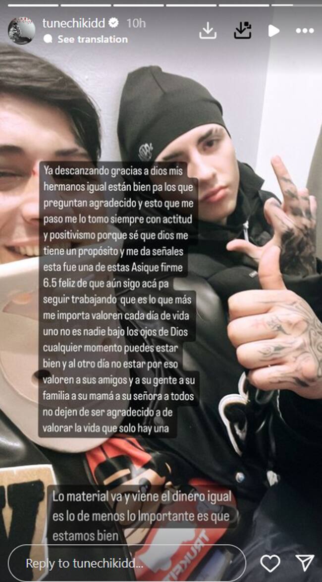 Finalmente, Tunechikidd expresó que “lo material va y viene, el dinero igual, es lo de menos. Lo importante es que estamos bien”.