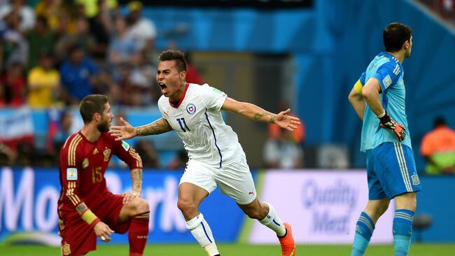 La Roja, que en aquel entonces era dirigida por Jorge Sampaoli, se impuso con los goles de Eduardo Vargas y Charles Aránguiz y dejó a la vigente campeona del mundo sin opciones de avanzar a octavos de final del torneo.