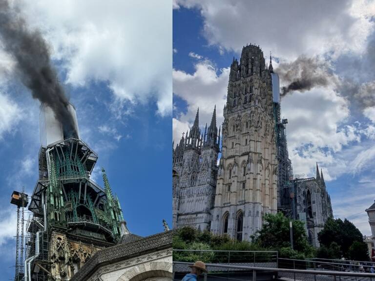 Un incendio afecta la catedral gótica de Ruan, una de las más emblemáticas de Francia, donde la gente en las calles mira desde abajo la oscura columna de humo que sale de la aguja.