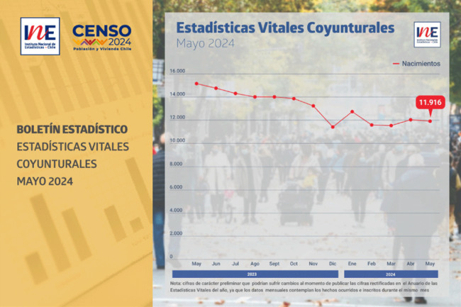 El Instituto Nacional de Estadísticas (INE) publicó su boletín de estadísticas vitales coyunturales del mes, en el que se informa que durante mayo del presente año, se registraron 11.916 nacimientos.