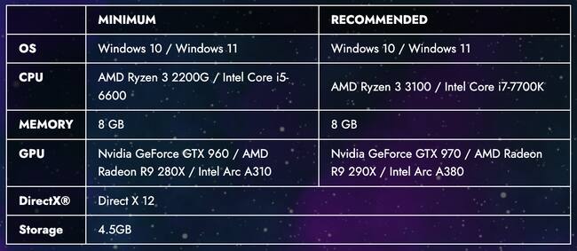 - Gráficos: Nvidia GeForce GTX 960, AMD Radeon R9 280X o Intel Arc A310