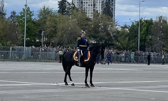 Finalmente, el comandante general de la Guarnición de Ejército de la Región Metropolitana, Alejandro Ciuffardi, montado en un caballo, pidió autorización al Presidente Boric para iniciar la Parada Militar 2024, siendo concedida por el mandatario.