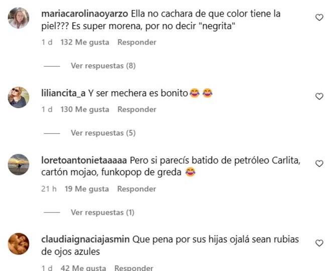 Un extracto que fue de lo más comentado en redes sociales, donde a nadie le parecieron sus dichos. “¿Ella no cachará de qué color tiene la piel??? Es super morena, por no decir ‘negrita’”, fue parte de lo que le respondieron.