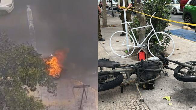 Durante este viernes, una detención ciudadana en la intersección de las calles Santa Isabel y Carmen, en el centro de Santiago, terminó con una motocicleta incendiada.