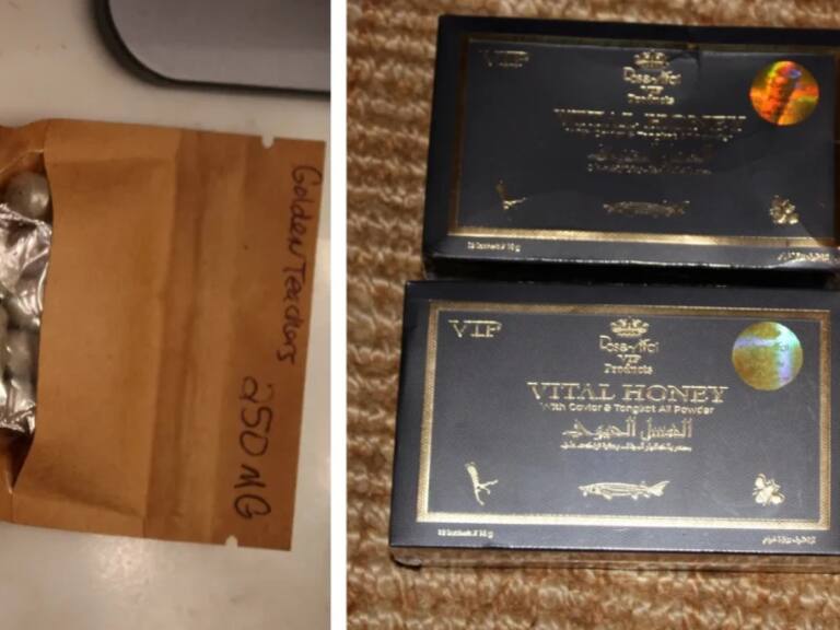 Entre los hallazgos se incluyen rifles AR-15 desarmados, municiones, armas con números de serie borrados y visores de precisión. En el clóset principal de la residencia, los agentes también encontraron decenas de zapatos de tacón, juguetes sexuales, sogas, lubricantes íntimos y suplementos sexuales como “Vital Honey”.