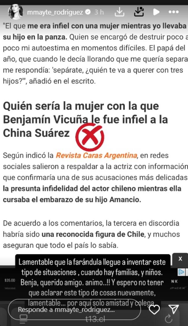 FOTO. Mayte Rodríguez fue acusada de infidelidad con Benjamín Vicuña en medio de escándalo con China Suárez: esto es lo que contestó