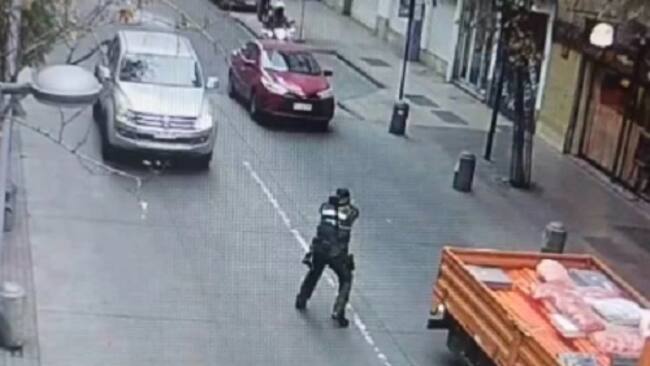 Es un registro impactante. Uno que da cuenta del atropello de un carabinero en pleno centro de Santiago, en calle Miraflores.