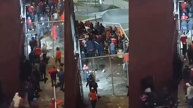 Las imágenes muestran a barristas argentinos extrayendo objetos contundentes desde una bodega interna del recinto, espacio que algunos seguidores del club han denominado “el cuartito” y que, según denuncias, estaba destinado a preparar la emboscada.