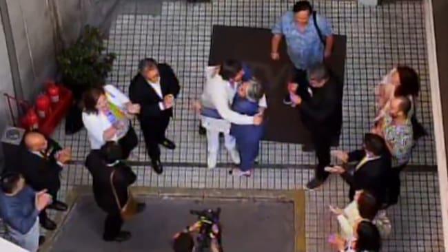 Así, la postulante a La Moneda comenzó a saludar a sus compañeros, instante donde estos hicieron una especie de rueda alrededor de ella, aplaudiéndola y gritando consignas.