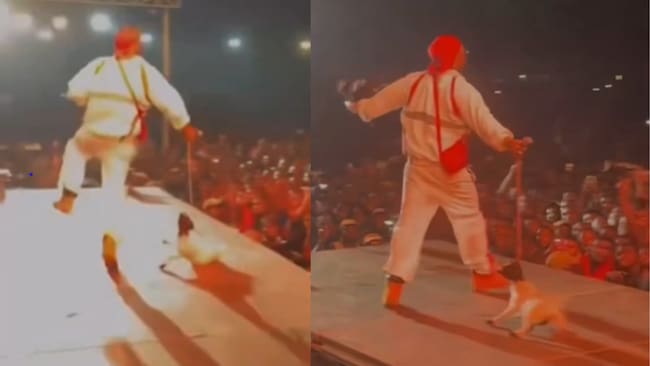 Durante uno de sus conciertos más recientes, el artista, que fue telonero de Phyno Fino, salió al escenario con un insólito acompañante: un pequeño cabrito de pelaje blanco y negro.