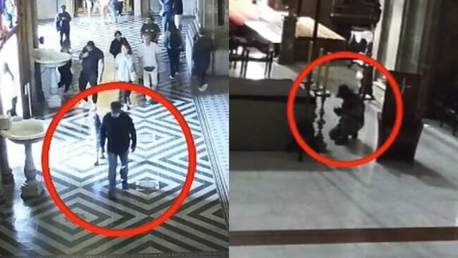 Entró con mascarilla y pasó la noche en el lugar: video muestra cómo operó el detenido por el robo en la Catedral de Santiago
