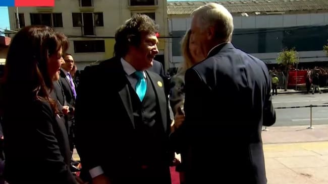Cambio de mando 2026: El cálido abrazo entre José Antonio Kast y Javier Milei en la entrada del Congreso Nacional