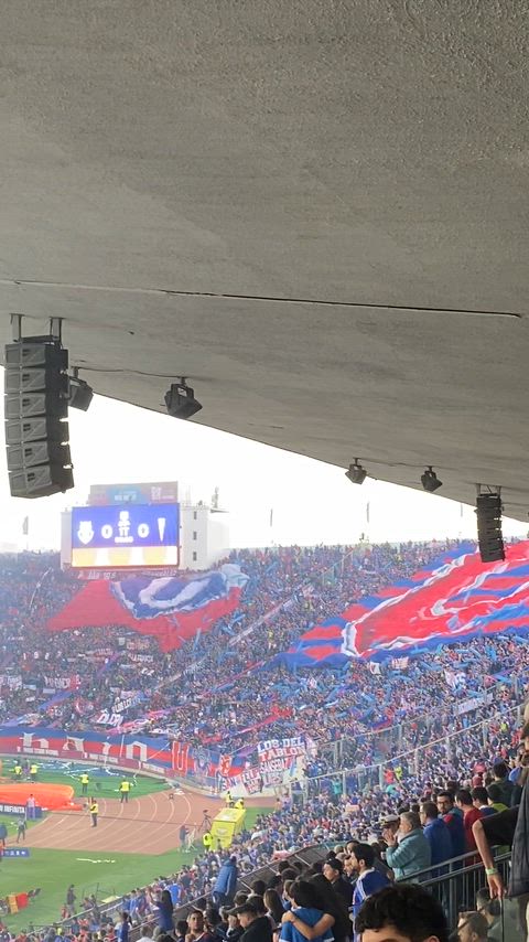 Lienzos gigantes, humo de colores y pirotecnia embellecieron el Estadio Nacional antes de que azules y cruzados comenzaran el juego.