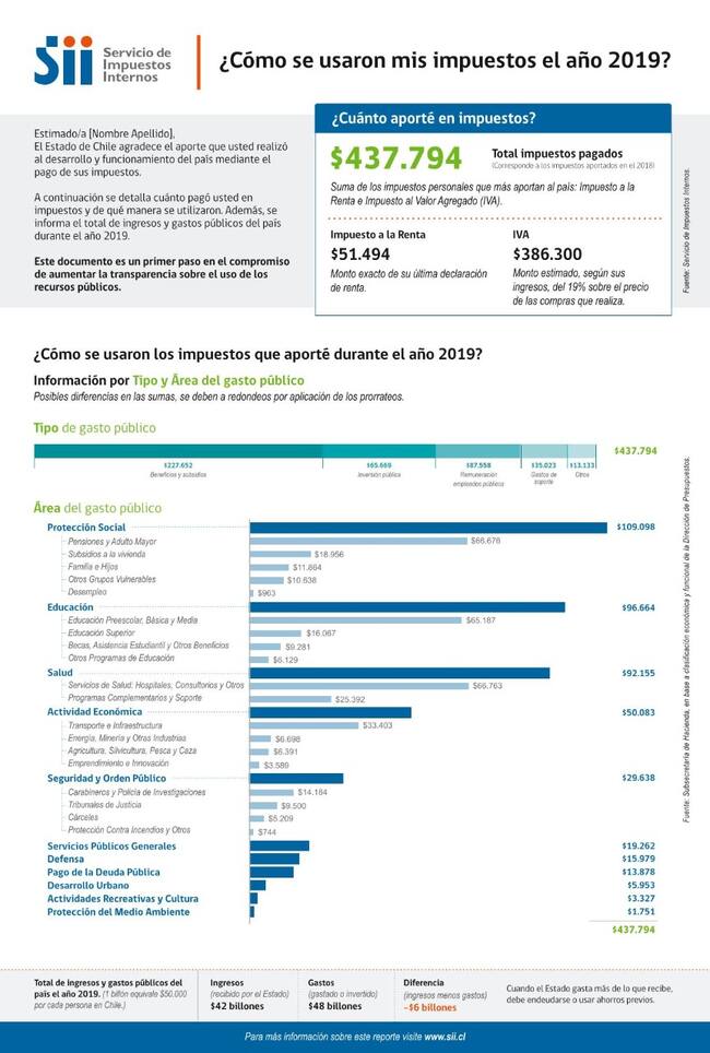 «¿Cómo se usaron mis impuestos el año 2019?»: Ministerio de Hacienda y SII enviarán reporte detallado a contribuyentes