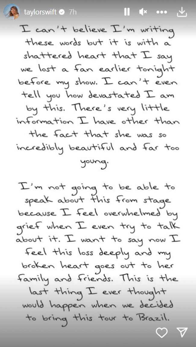 Taylor Swift está en Brasil, siguiendo con la serie de conciertos que la trajo a Latinoamérica, pero no a Chile.