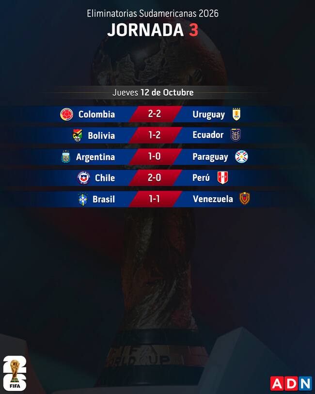 Recuerda que toda la acción de las Eliminatorias 2026 la puedes seguir en vivo y en directo junto al equipo de ADN, a través de todas sus plataformas y redes sociales.