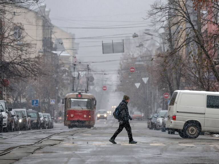 Una persona camina mientras cae la nieve en la ciudad de Kiev en Ucrania / Jeff J Mitchell