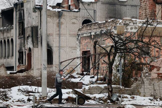 Una persona camina ante un edificio dañado por los misiles en Ucrania / Jeff J Mitchell