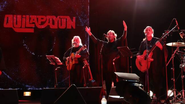 «Aquí no solamente está Quilapayún, que ha recorrido y permanecido en el tiempo, están los hijos, está este grupo emblemático que cruza nuestra historia política y social. Está Pablo Neruda, guiándonos con su palabra«, señaló el intérprete, enfatizando en el impacto de las aristas que construyeron la potente presentación.