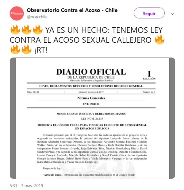 Fue publicada en el Diario Oficial la norma que permite a todos los afectados denunciar estos hechos en el espacio público.