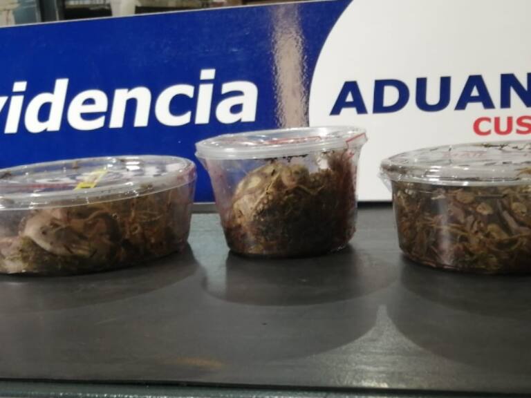 Un mismo hallazgo se dio a principios de este mes, pero en esta ocasión la encomienda tenía cuatro envases plásticos con serpientes y tortugas. En estos dos casos, las cajas fueron incautadas por los fiscalizadores y se le dio aviso a la Fiscalía Metropolitana Occidente.