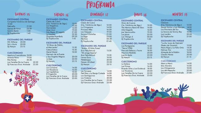 Más tarde, la programación continuará con Caleuchístico (15:30 horas), reconocida banda musical con un programa de televisión homónimo, donde presentan historias, personajes y leyendas chilenas, rescatando el patrimonio cultural a través de canciones originales y de entretenidas secciones destinadas al público familiar e infantil.