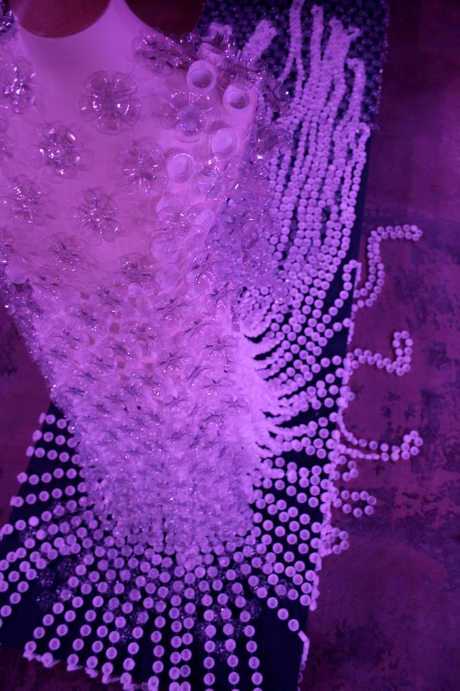 Hace cuatro años Michelle Brand realizó este vestido con 1.110 botellas de plástico y que pesa unos 10 kilos. Bautizado como Green with Envy, el vestido se exhibió en el centro comercial Manchester Arndale de Reino Unido, como parte de una muestra organizada con motivo de la boda real entre Guillermo de Inglaterra y Kate Middleton.