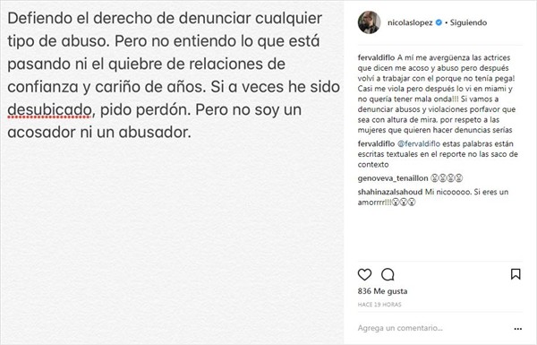 Nicolás López se defiende tras dura denuncia: «No soy un acosador ni abusador»